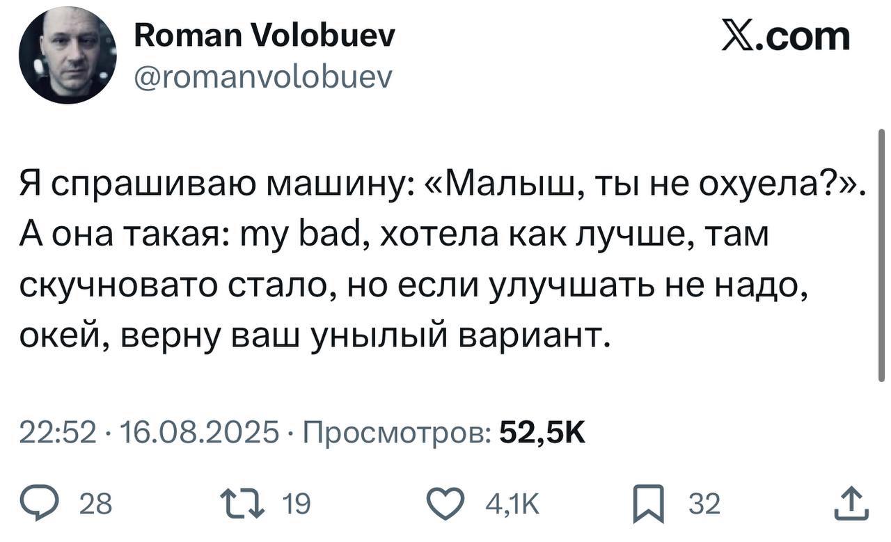 Интересно, как даже простые задания могут извлечь из AI нечто столь креативное и неожиданное. Это ещё раз доказывает, что потенциал ИИ огромен не только в стандартных применениях, но и в более художественных и культурных сферах. Было бы любопытно увидеть, как развивался бы сценарий, созданный на основе подобных импровизаций, и какие неожиданные повороты могла бы предложить модель, если дать ей чуть больше свободы.